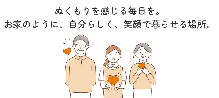 やさしさと安心に包まれた環境の中で、自分らしい毎日を、笑顔とともにお過ごしください。